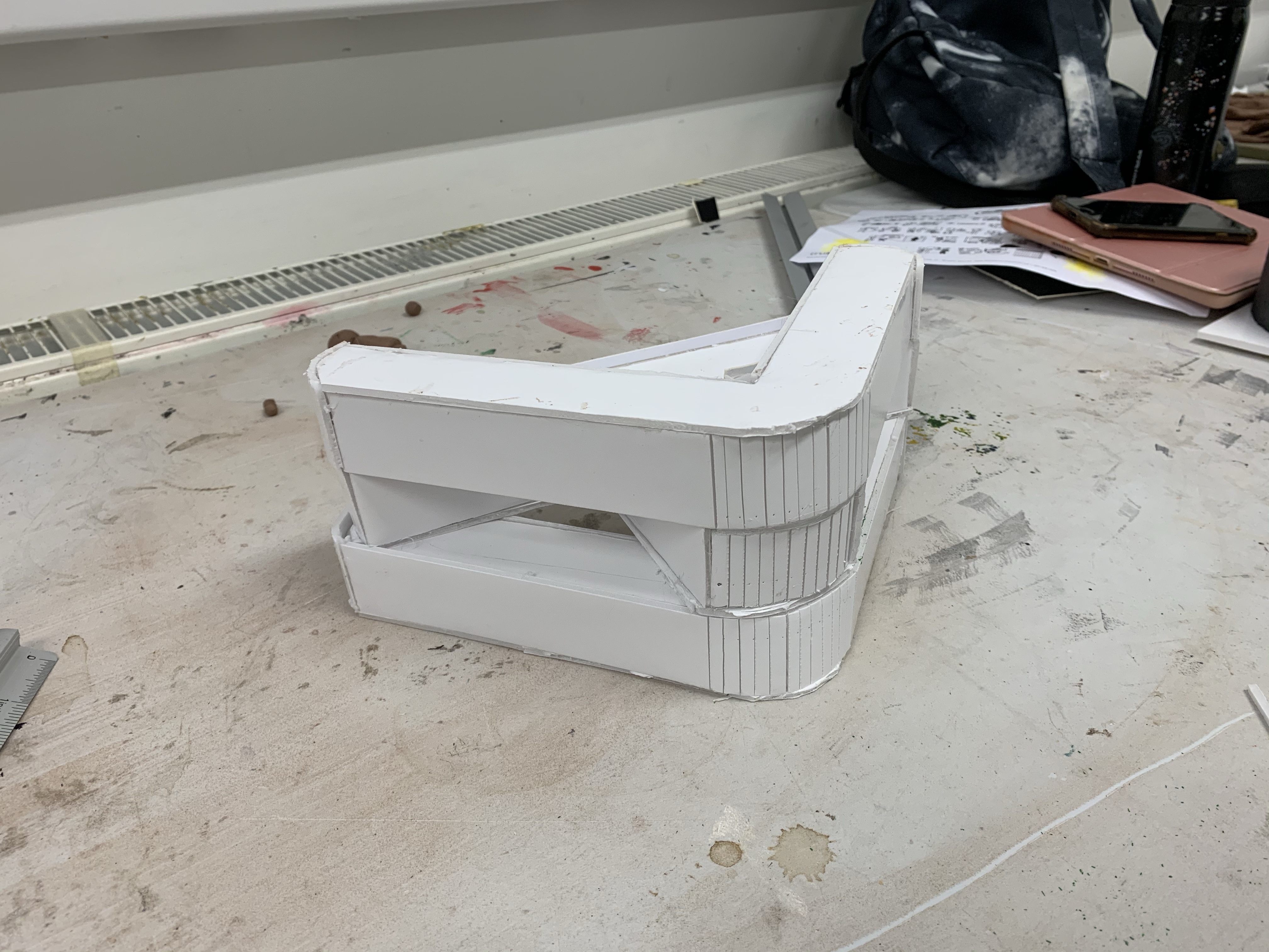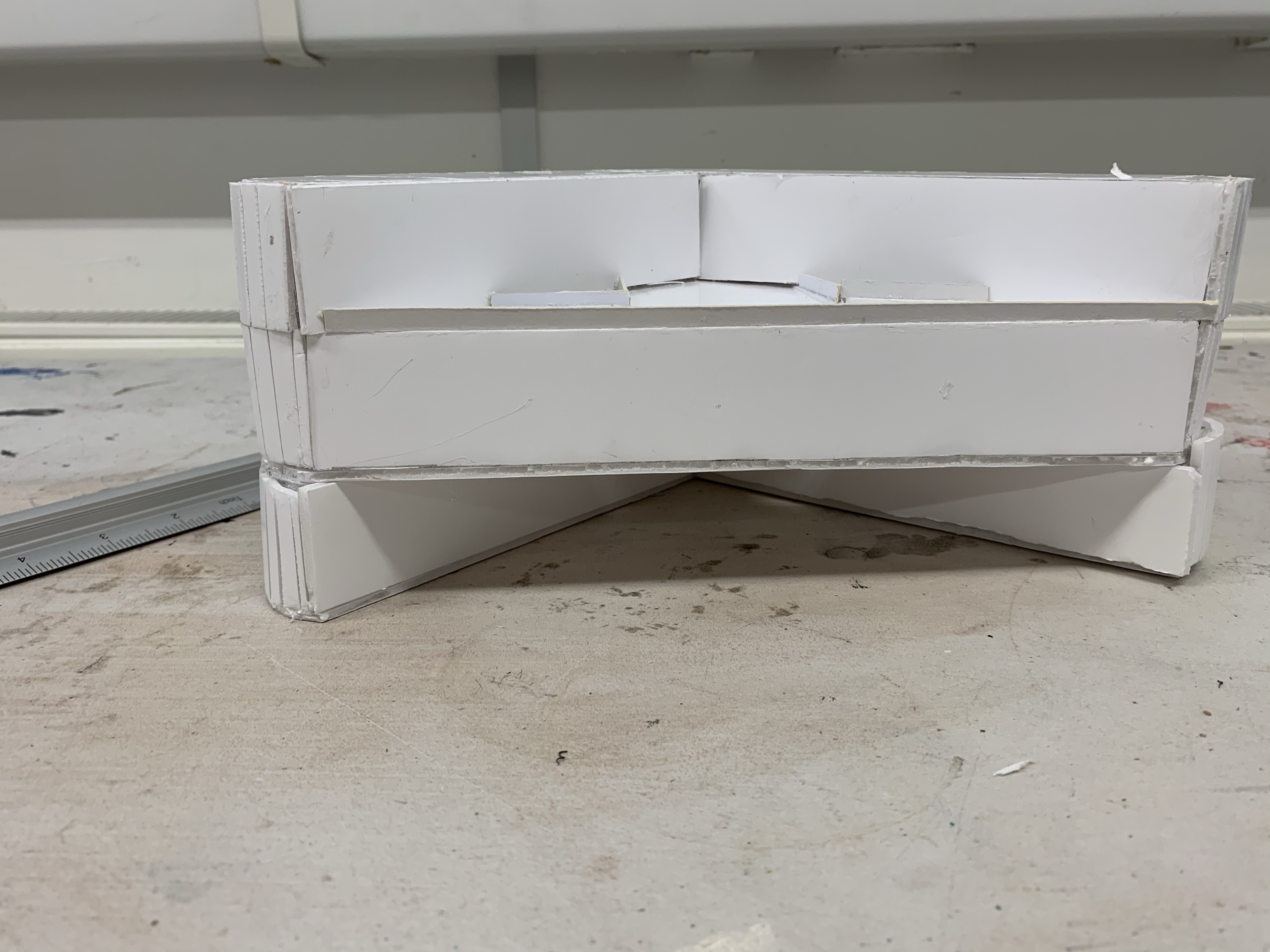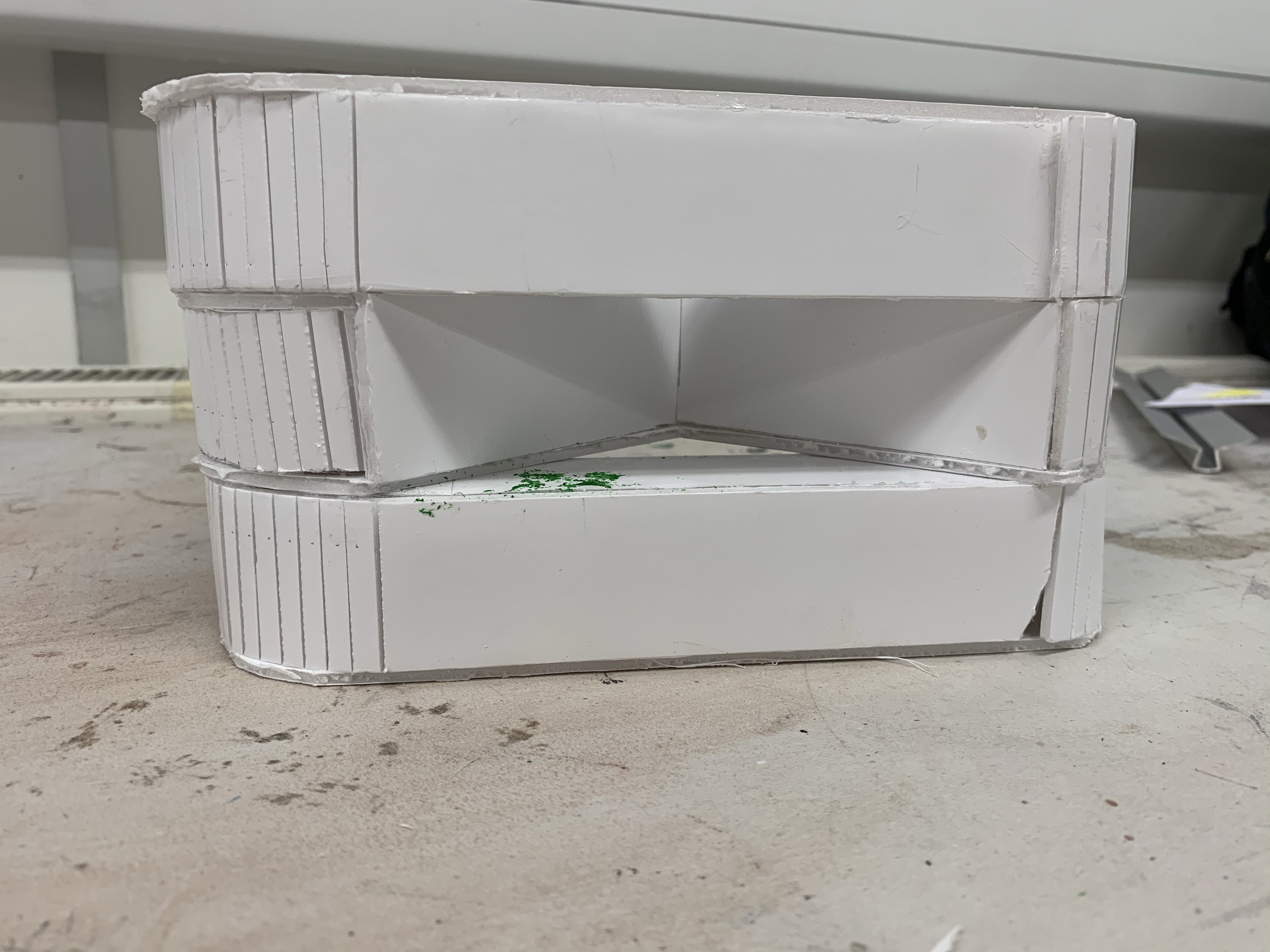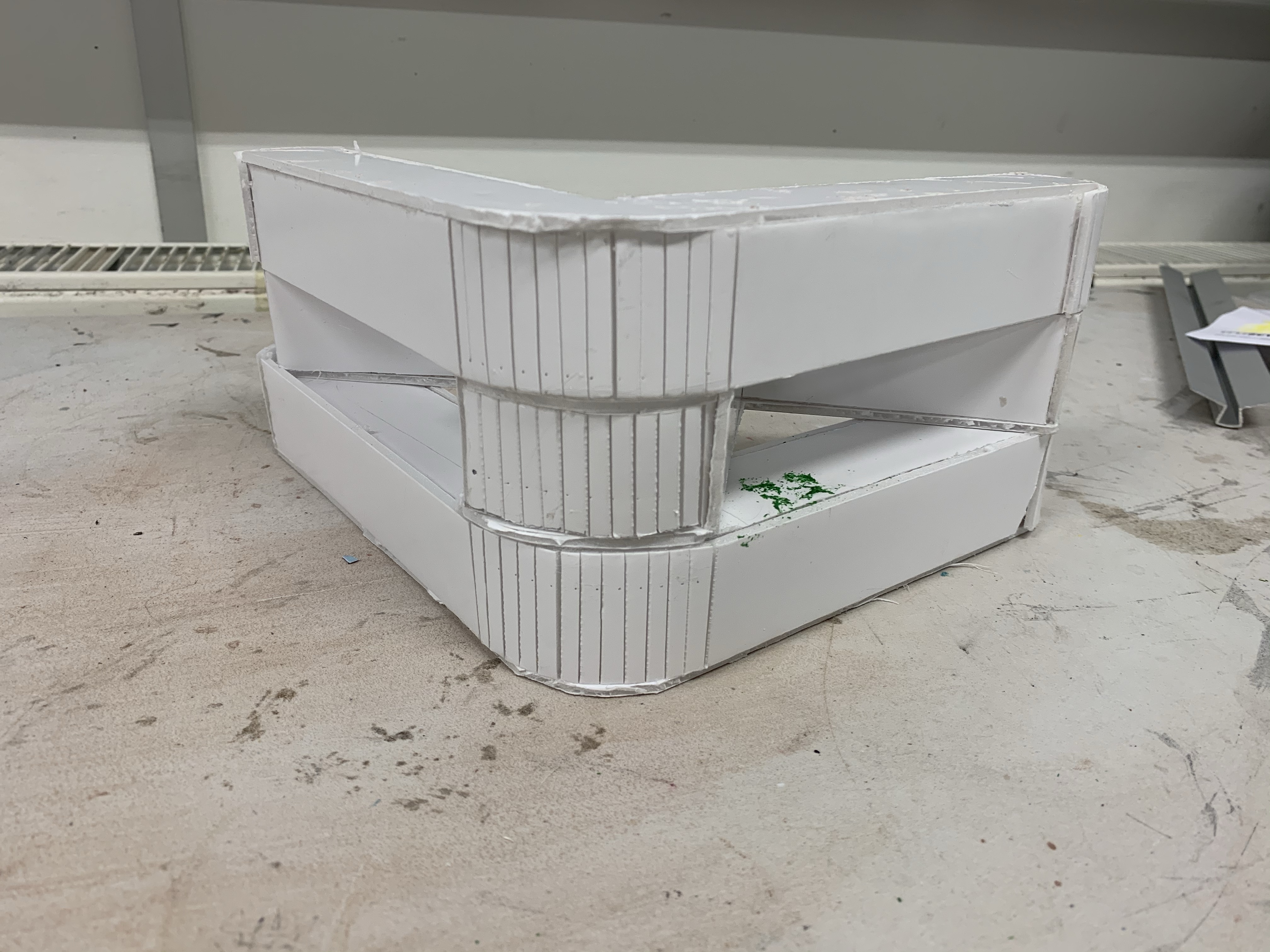 Last Friday we made a building model out of plastic sheets. This is my first time to make an architectural model. I was very excited. And this is my work.